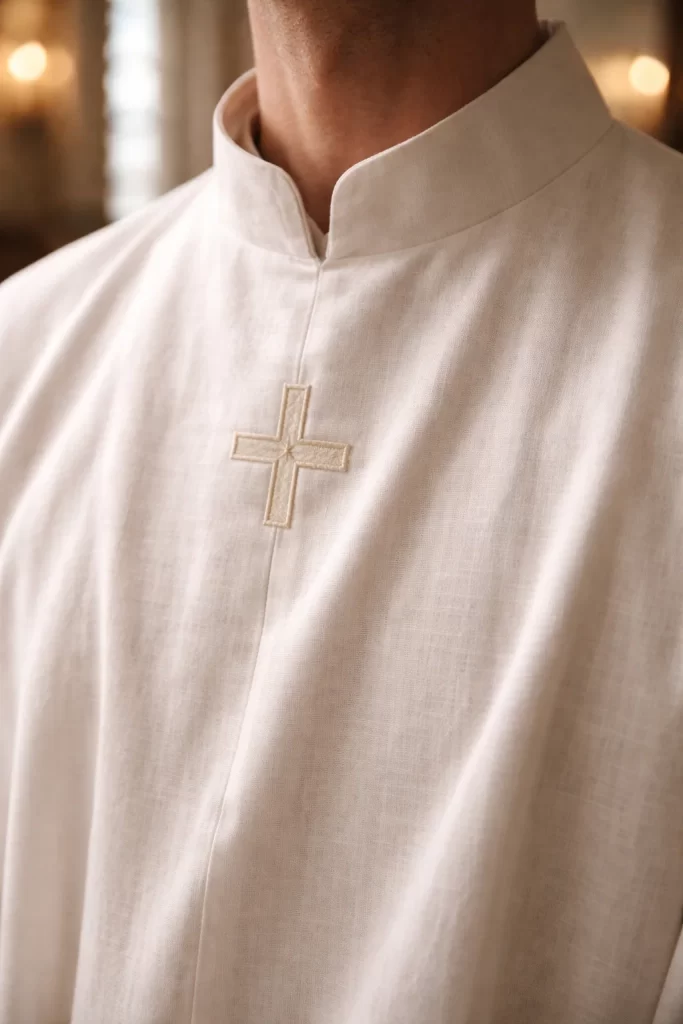 Designed for clergy who prefer a structured fit, these Catholic priest albs offer a refined appearance while maintaining liturgical tradition.