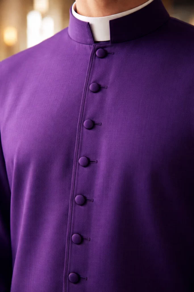 Collars feature reinforced facings that retain their shape under clerical collars and preaching bands. Hidden closure systems maintain a clean, uninterrupted line.