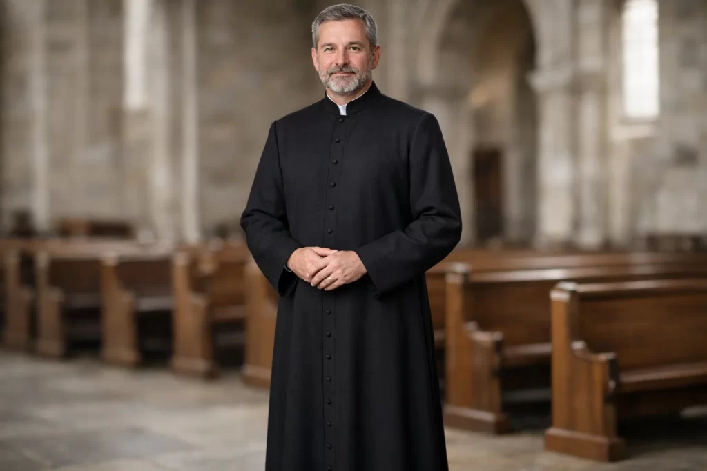 Constructed with high-thread-count gabardine and wool blends, these robes maintain full opacity. Lighter underlayers remain concealed under sanctuary lights or cameras.