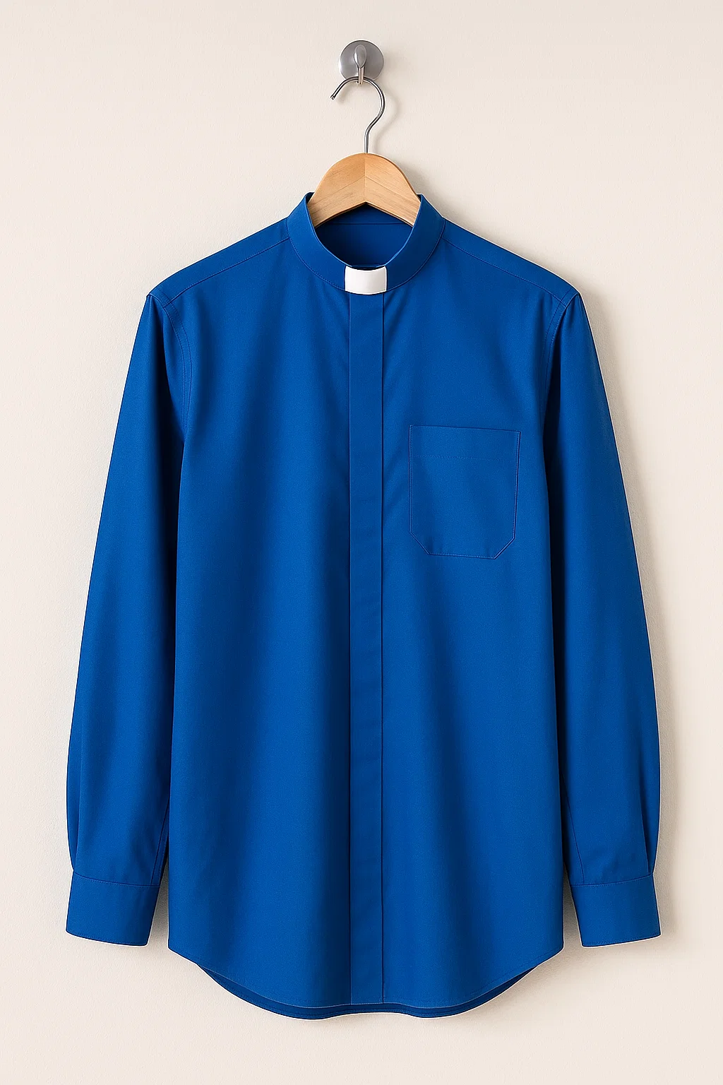 The Vespera royal blue clergy shirt blends tradition with practicality, offering ministers a polished and symbolic garment for both sacred and daily duties. With its liturgical color, discreet pocket, and tailored details, it provides comfort, function, and reverence in equal measure.